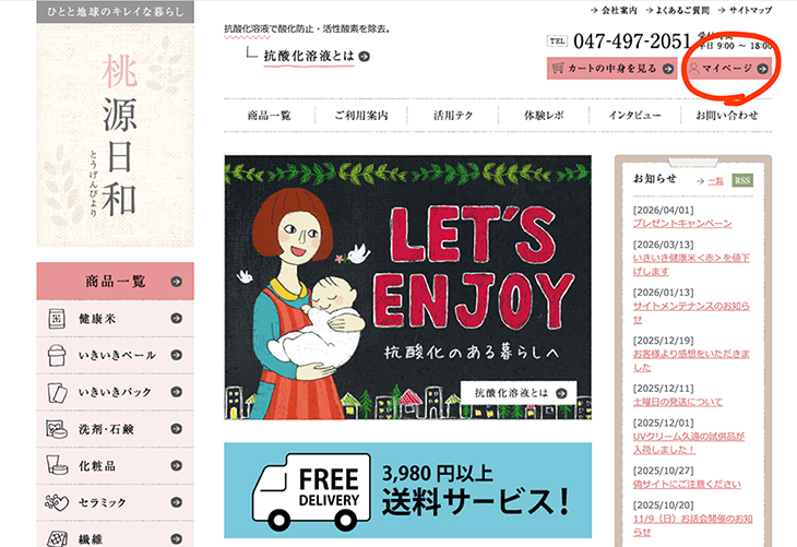 いつも桃源日和をご利用いただき、誠にありがとうございます。お客様よりご要望の多かった「マイページ」がこの度オープンしました。